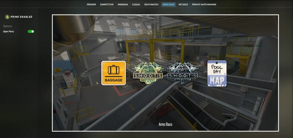 Arms Race rewards you with XP for your Profile Rank, which counts toward your weekly drops. You won’t find a rating system here – it’s purely a casual, fun format that has absolutely zero impact on your CS2 competitive ranks.